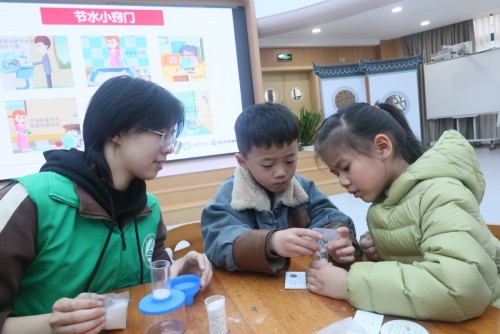在“中国水周”期间,太湖幼儿园邀请江南大学汇思公益团队开展“世界水日进校园,节水意识润童心”公益科普活动。孩子们从水的特性、水与生命、水与生活、节水技巧四个方面,走进水的世界。在净水实验中,孩子们化身为小小科学家,亲手搭建滤水装置,直观感受污水净化的过程。