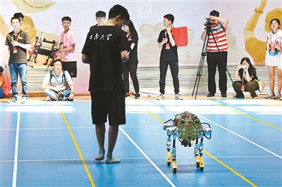全国大学生机器人大赛,江南大学君远学院机器人队学生比赛中。学校供图