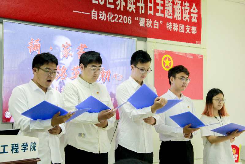 “我俩只是少健康,否则如今正是好时光,像海鸥样的自由,像海天般的空旷,正好准备着我俩的力量,携手上沙场。之华,我梦里也不能离你的印象。”瞿秋白特称团支部的团员代表陈宸、朱天雨、林星语、段艺博、贾昊天深情地诵读着《瞿秋白给杨之华的信》。抑扬顿挫间,一字一句书写着瞿秋白对革命事业的赤忱,一声一叹流淌着青年学子对革命先烈的致敬。一封家书就是一段历史,它如同一根连接过去与现在的纽带,让现场师生们深切、直观地感受到历久弥新的精神伟力。