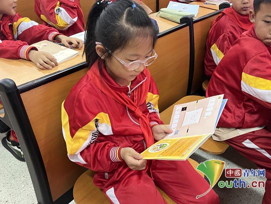 学生认真阅读宣传册。江南大学研支团供图