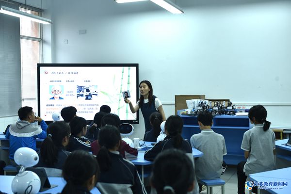 【江苏教育新闻网5月28日】5月27日,江南大学人工智能研究团队赴无锡市南湖中学调研人工智能因材施教项目。大家集中观摩了人工智能研讨课《传承文化:寻找手艺人》,课堂围绕非物质文化遗产的传承为背景展开,以科大讯飞小飞机器人为载体,教学中借助人工智能人脸识别技术与语音合成技术,实现智能识别手艺人的姓名与类别,并且在教学任务中加入Python语言中顺序结构、分支结构、循环结构等编程语言的学习。