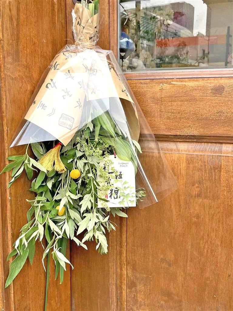 “端午挂艾草是传统风俗,只是现在单调的一把艾草已经不能满足年轻人的审美了。”在无锡市中心经营了8年花店的店长丹丹告诉记者,去年,他们推出全绿色的艾草手捧花束,虽说是花束,但实际没有一枝花,“这几年流行的花艺是回归自然,因此草类花材的占比越来越重,也逐渐受到大众的喜爱。”丹丹表示,往年艾草门挂、花束的零售客单量在五六十份左右,既应景,又满足大家追求传统文化的仪式感。
