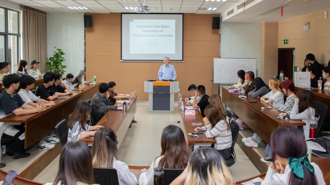 荷兰蒂尔堡大学前董事会成员、飞利浦亚洲研究院前总裁兼首席技术官Frans Greidanus博士作讲座(学校供图,央广网发)