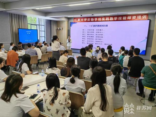 记者今天(6月21日)从江南大学了解到,为进一步提升教员们的教学水平,优化课堂效果,该校后勤学校近日开设了实践教学技能师资培训班,邀请校内外教授、名师团队给后勤师资队伍“上上课”。首期培训邀请到了江苏理工学院教学质量监控与评估处教师发展中心副处长龙一平教授、江南大学马克思主义学院教授陈绪新、人文学院副教授肖凌燕,带来了《如何让您的课堂教学更精彩》《Z时代大学生心理特点及学习动机激发》等精彩课程。培训现场互动积极,气氛热烈。