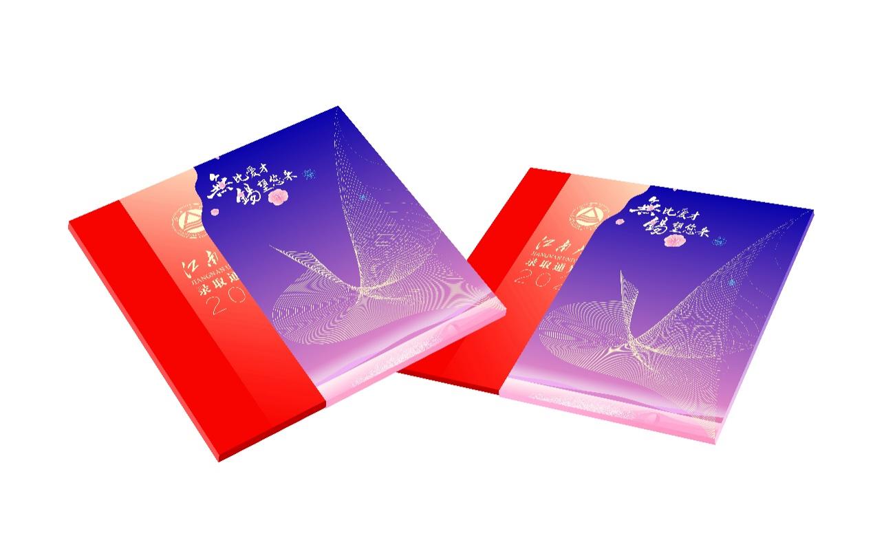 通过封套,便能对江南大学所处的“太湖明珠,江南盛地”无锡有了个初印象。你可能会注意到,封套左上角的波纹缺了一个角,其实,这是别出心裁的设计。不经意露出的证书一角,又似东升旭日。在封套正面,写着“无比爱才,锡望您来”,传递出江南大学所在之地无锡这座“新时代工商名城”对青年学子的殷切期盼。