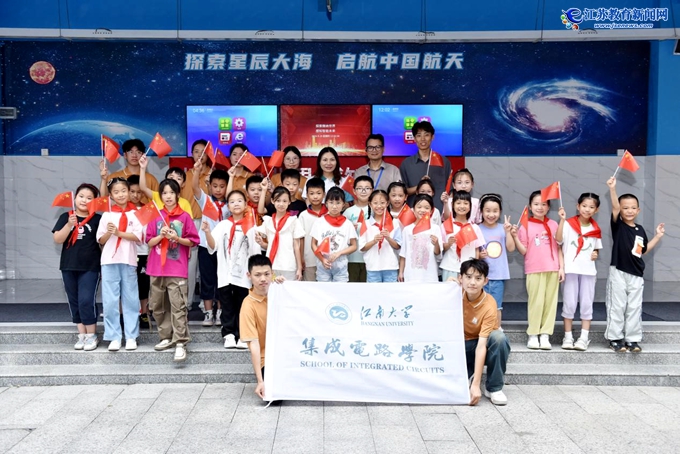 【江苏教育新闻网9月24日】科技兴则国家兴,少年强则国家强。在2024年全国科普日到来之际,江南大学集成电路学院“远望号”特称团支部携手江阴市青阳实验小学,举办了一场别开生面的科技“快闪”活动。科普现场高频互动、气氛热烈,在青少年心中点燃了一簇科技之火。