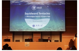 在本科生组比赛中,国际2201班范译文团队的“章鱼哥—微藻基章鱼腿”(Squidward Tentacles)项目、食质2201班纪富淳团队的“浮生元—浮萍叶蛋白与乳清蛋白双蛋白饮料”(Diprotein Leaf Milk)项目、食质2202班程绪团队的“绿色活力培根”(Green Vitality Bacon)项目,经过激烈角逐,成功从最佳科学技术奖(Food Product Development Competition)初赛中突围,晋级全球决赛。最终,Squidward Tentacles项目团队在13支入围团队中脱颖而出,荣获大赛“最佳科学技术奖”。