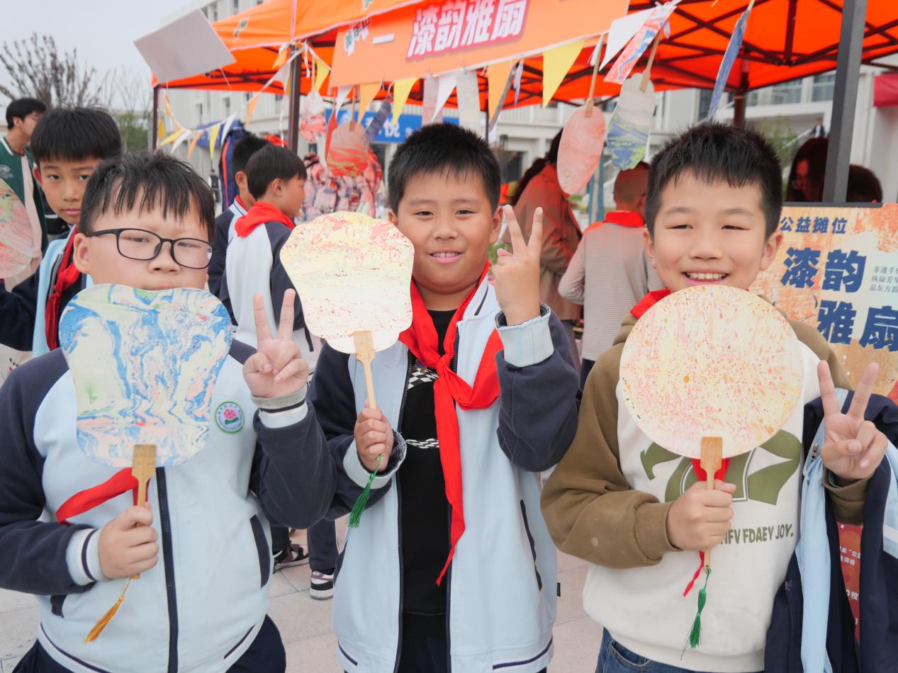 在各个摊位上展示的创意作品,都是学生们实践美育创作出来的成果。有的将现代设计理念与非遗元素巧妙结合,有的则是对传统美学的全新诠释,想象力和创造力爆棚。爱心公益区的互动活动也深受学生们喜爱,情绪纸飞机、开心商店的交友互动游戏、海娜公益摊位等项目,为活动增添了更多趣味与温情。