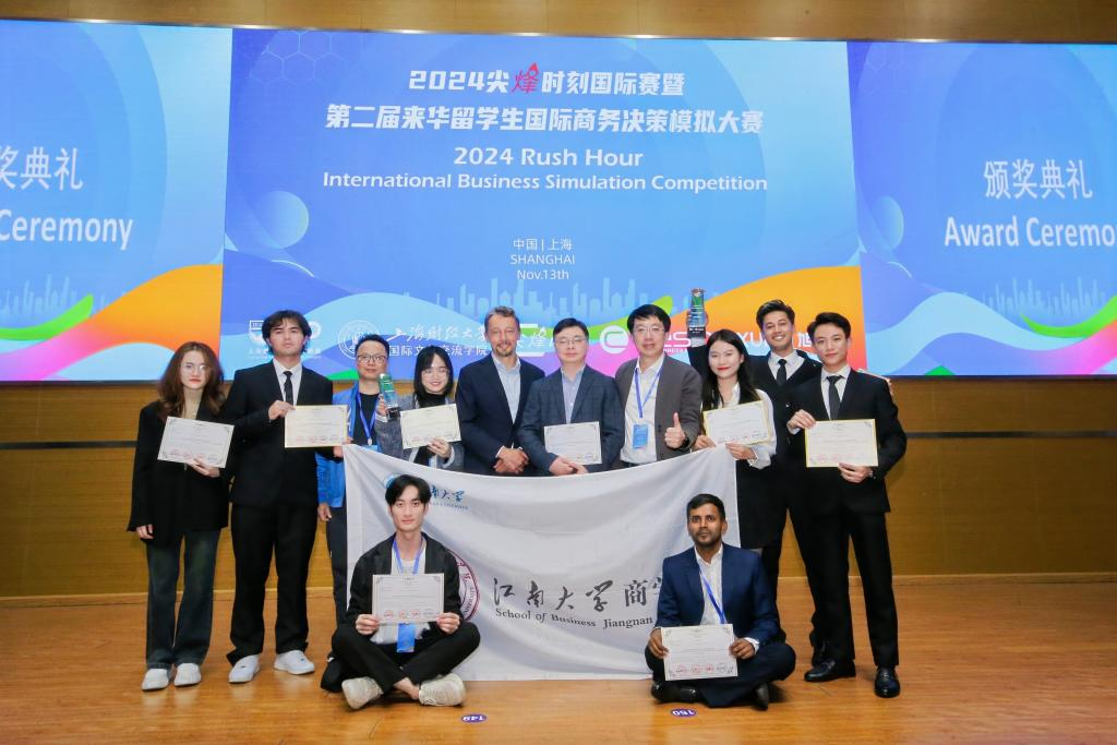 江南大学丝路项目留学生首次参加该项赛事,团队在商学院王雷、朱佳俊、唐杰等老师的共同指导下,在紧张激烈的总决赛中团结协作,最终江南大学“江南香料商队”(许强力、刘潘安娜、宋祥、王俊逸)荣获全国决赛总冠军,“Shining path”团队(范氏芳草、陈氏冰壶、阮成忠、顾长明)荣获决赛一等奖。