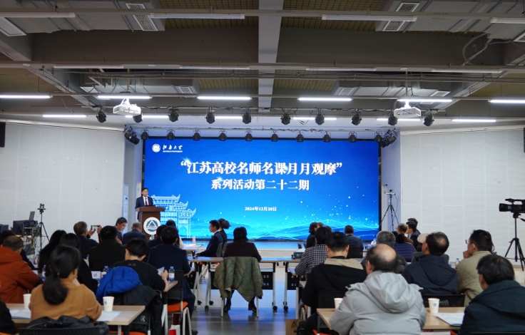 【交汇点12月23日】12月20日下午,第二十二期江苏高校名师名课月月观摩活动在江南大学举行。来自江南大学、苏州大学、江苏大学、无锡学院等相关高校的教师代表在现场观摩,活动同步面向全省高校进行直播。