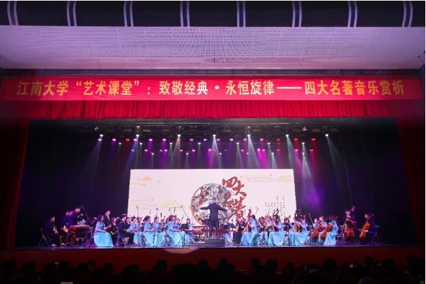 【高校思政网1月2日】2015年12月,江南大学“艺术课堂”文化育人项目正式创立。这是学校深化教育体制改革、构建“三全育人”体系、推进“大思政课”建设、打造“美育大平台”的一项重要举措。项目建设与实施紧扣立德树人根本任务,以强化校园文化育人功能为目标引领,聚焦大学生思想文化需求,整合校内外资源,在创造性转化、创新性继承与发展中华优秀传统文化、革命文化、社会主义先进文化的基础上,坚持“思想政治教育与艺术素质教育”相统一,坚持“思想精深、艺术精湛、制作精良”相结合,坚持“明德引领风尚与美育浸润心灵”相贯通,打造体现时代精神、富有学校特色、具有地域特点、契合学生需求的文化育人品牌。项目创办以来,累计开展各类展演、讲座76次,展览、活动等64场,覆盖师生18万人次。