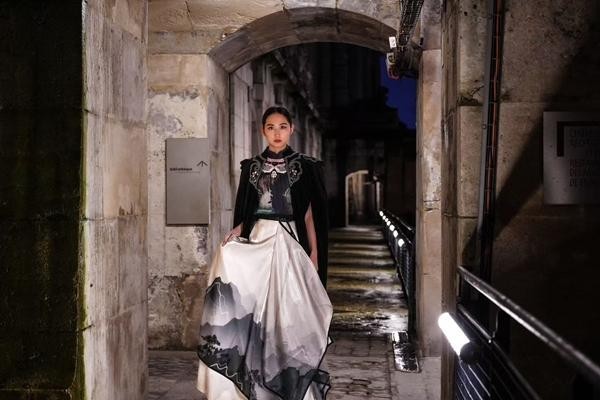 值得一提的是,《飞山》系列作品还融入了国家级非物质文化遗产——苏绣,设计团队将其融入了云肩的设计。“我们非常希望在海外展示我国最顶尖的传统工艺,便选择了苏绣。”牛犁介绍,“但我们坚持‘古今融合’的理念,苏绣是传统刺绣,配饰则用了现代的3D打印技术,将现代科技与传统工艺巧妙结合。”