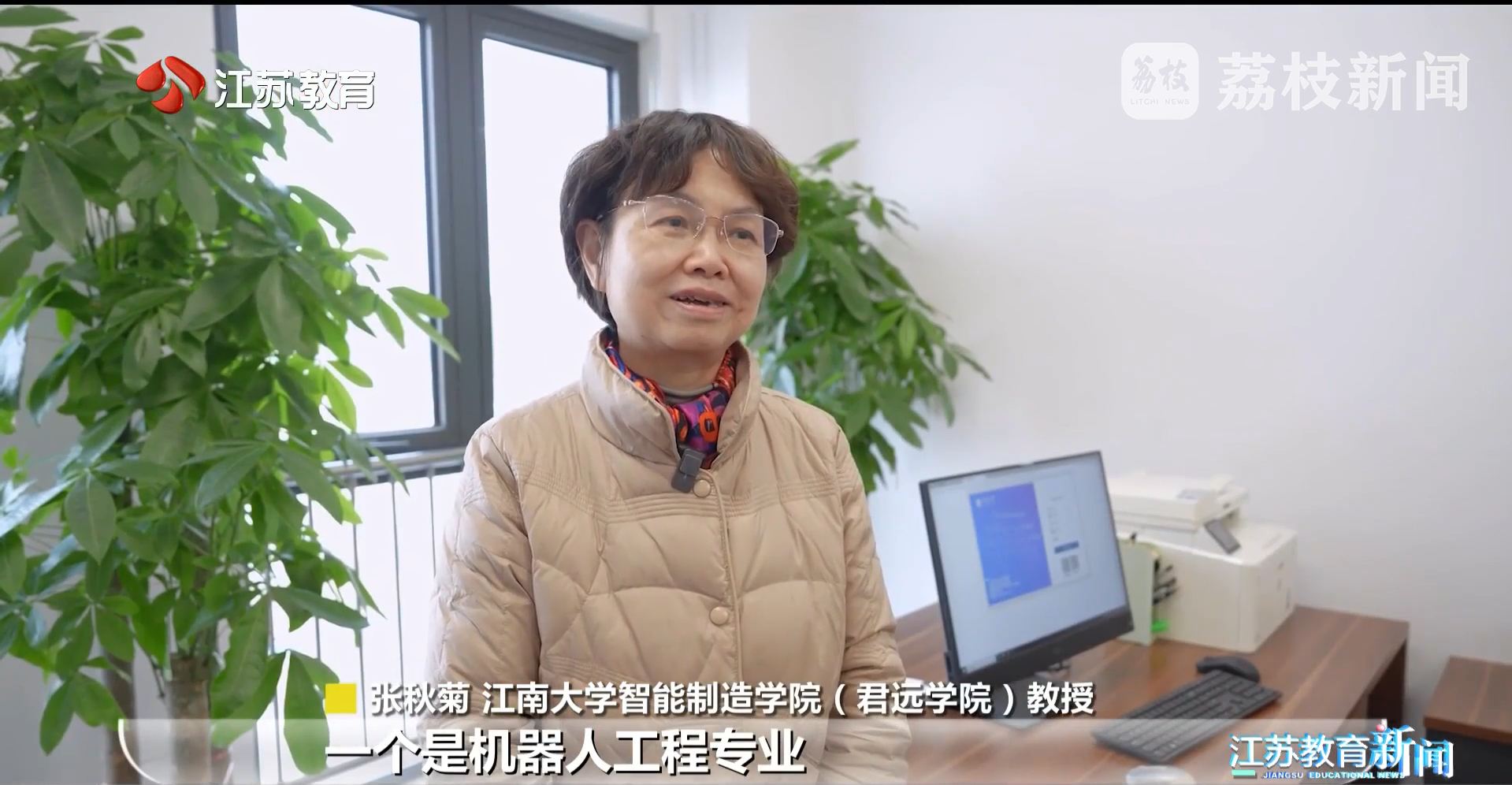 【江苏教育频道2月19日】2月19日晚,江苏教育频道《江苏教育新闻》栏目以“无锡:持续深化教育综合改革 学前教育普及普惠监测达标比居全省第一”为专题报道了无锡教育工作。其中,报道了我校智能制造学院(君远学院)张秋菊教授团队研究成果。张秋菊教授在接受采访时介绍,目前智能制造学院(君远学院)有两个专业,包括机器人工程和智能制造。结合江阴跟各种制造企业的联系,包括新的人形机器人研究在内的整个学科方向更加契合了现在机器人技术应用的趋势。