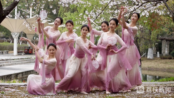 “同学们知道这首诗的含义吗?”“大家知道古典舞中是如何表现鲜花绽开的吗?”随着问答声起,一场古今对话拉开帷幕。少年与樱同舞、执卷长吟,汉服飘飘,古曲泠泠;参与者行踏樱林,赏心游乐,恍若步入水墨长卷。中华优秀传统文化在这场春日雅集中褪去尘封,化作触手可及的美学经典与时代新潮。