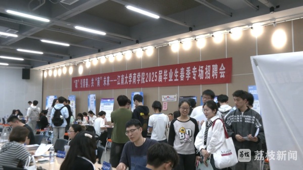 江南大学商学院举行2025届毕业生春季专场招聘会,提供的2500多个岗位,包括会计、金融、工商管理、国际经济与贸易、大数据管理与应用等。中信证券、中国平安人寿、招商银行、朗新科技、蔚来汽车等79家知名企业同台揽才。