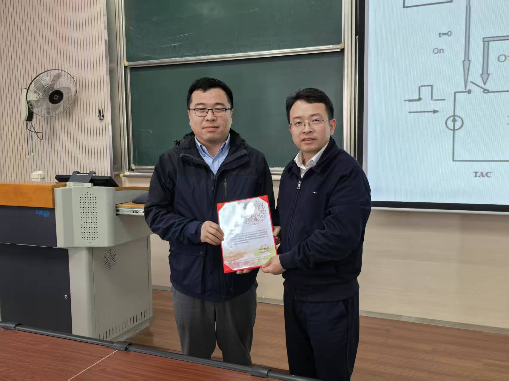 校领导在第一教学楼为马超群颁发感谢信