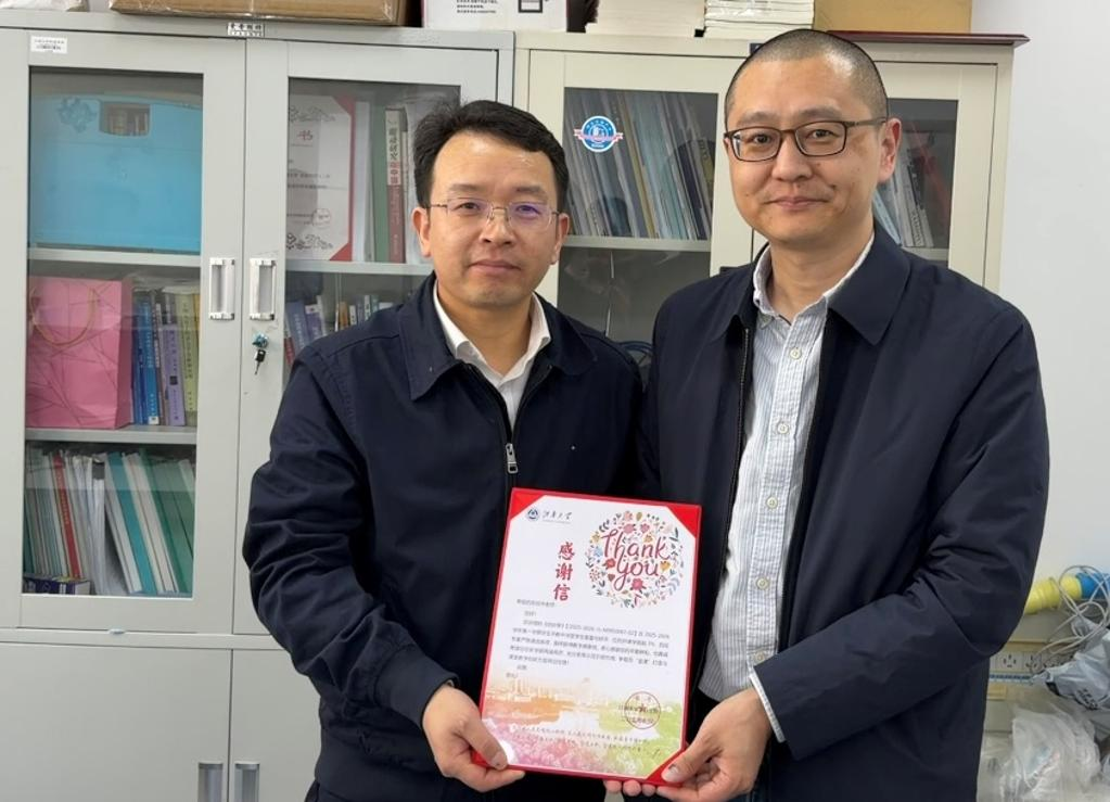 4月2日下午,校党委常委、副校长李兆丰与教师发展中心主任兼教务处副处长吴宝锁一行先后走访第一教学楼、生物工程学院、第二教学楼、纺织科学与工程学院,为荣获2025-2026-1学期教学感谢信的优秀教师代表马超群、张显、王锐、苏旭中四位一线教师现场颁发感谢信,对他们深耕教学一线、潜心教书育人表示诚挚感谢。