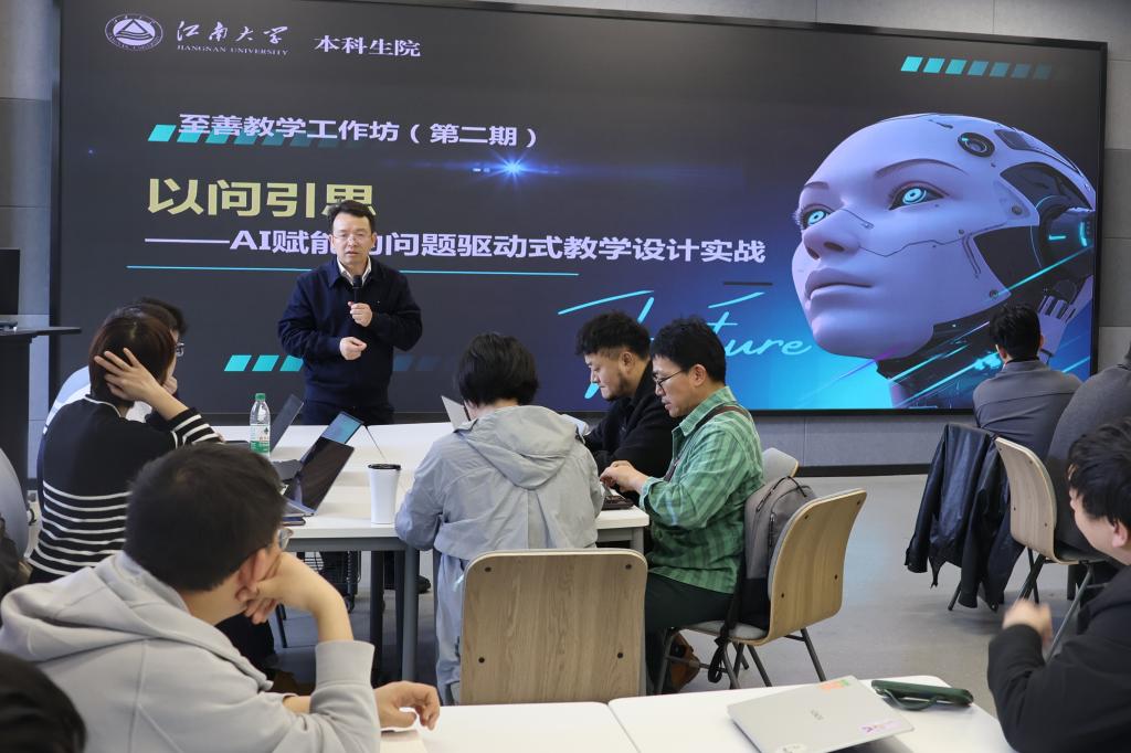 4月2日下午,由本科生院主办的“至善教学工作坊”在第二教学楼2D104举行。校党委常委、副校长李兆丰参加本期工作坊并讲话。本期工作坊以“以问引思——AI赋能的问题驱动式教学设计实战”为主题,是学校本学期重点打造的系列教学主题工作坊活动之一,来自各学院的20余名一线教师参加了本次活动。