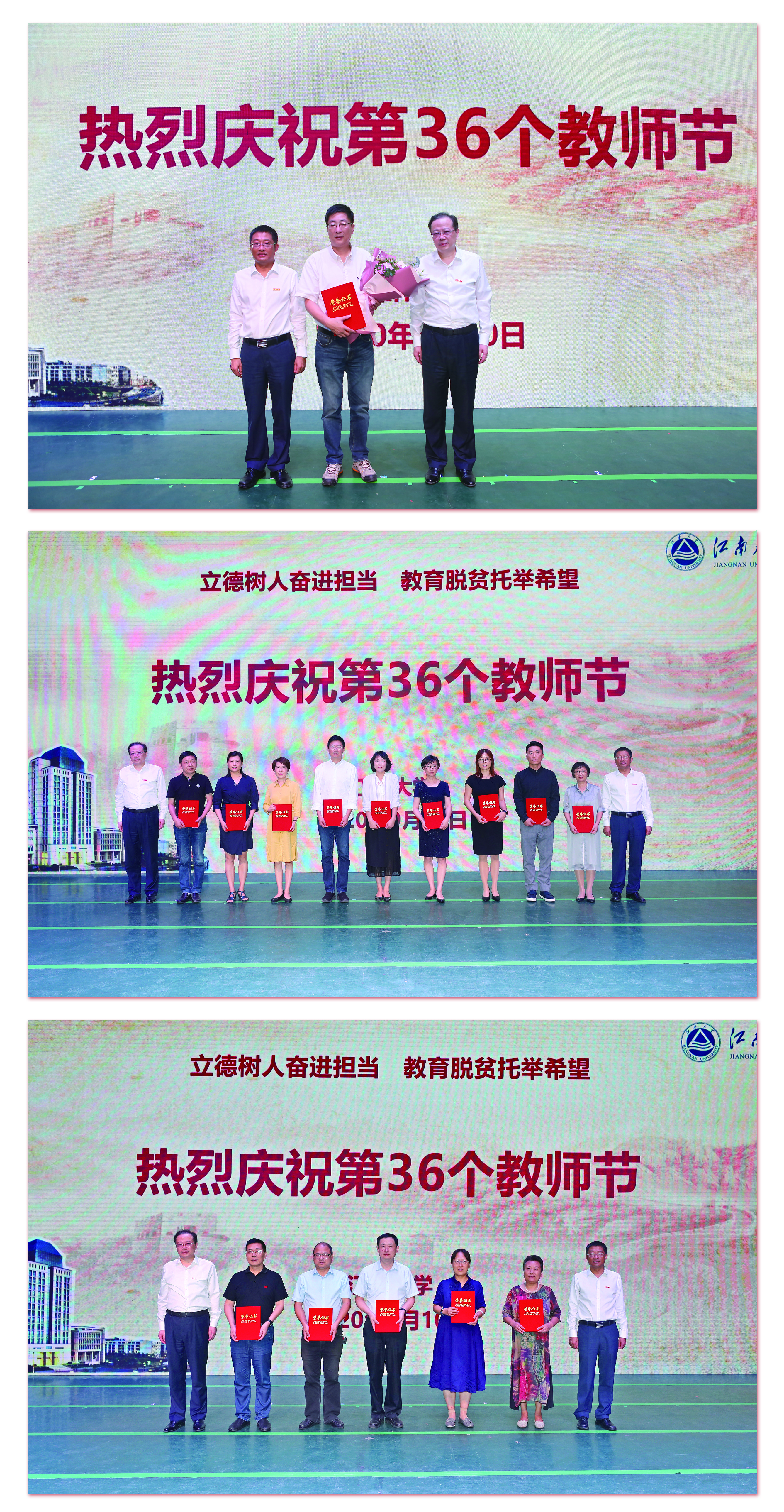 会上,“至善教学名师奖”获得者、纺织科学与工程学院徐阳老师作为教师代表发言,他回顾了与江南大学37年的深厚情缘,现场分享了一名平凡却不普通的高校教师坚守初心、传承师道、砥砺前行的心路历程。纺织科学与工程学院王心怡同学在发言中感恩身边传道授业、启迪智慧的好老师们,并为老师送上了诚挚的节日祝福。