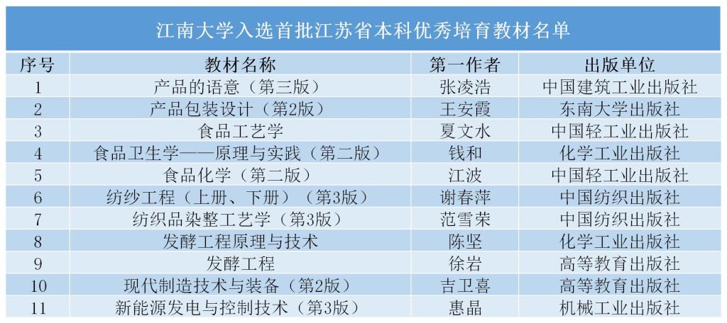 江南大学入选江苏省本科优秀培育教材名单