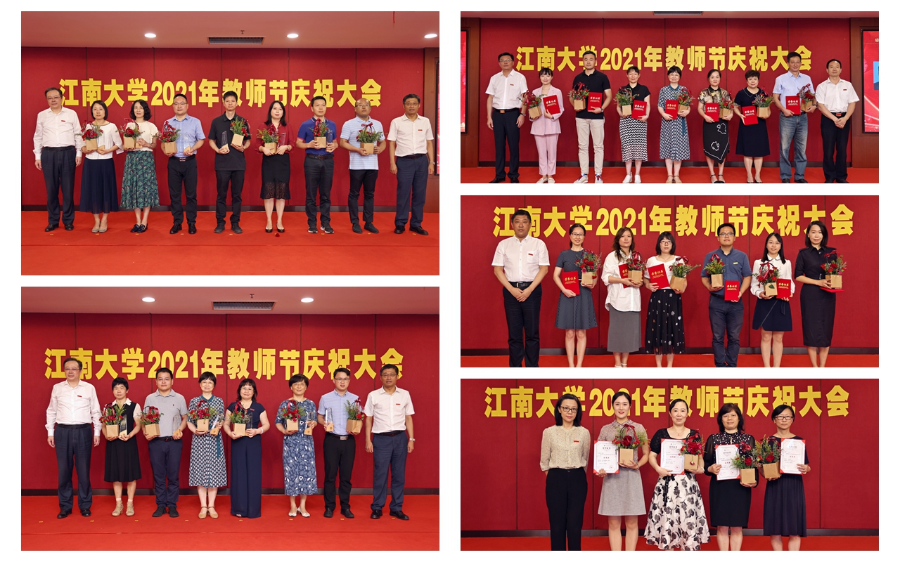 会上,校党委书记朱庆葆和校长陈卫走到嘉宾席中,为学校2021年度三十年教龄教师颁发纪念奖杯、献花,并与他们一一握手合影,向他们30年对教育事业的坚守和付出致敬。表彰颁奖环节中,校领导朱庆葆、陈卫、符惠明、刘淼、张影陆、堵国成先后为“三全育人先进事迹奖”“青年教师教学竞赛一等奖”“教师教学创新大赛优秀奖”“优秀教学奖”和“至善优秀教材奖”等获得者颁发了获奖证书。获奖老师们爱岗敬业、为人师表、乐于奉献、精益求精,是广大教师学习的榜样。