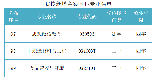 我校新增备案本科专业名单