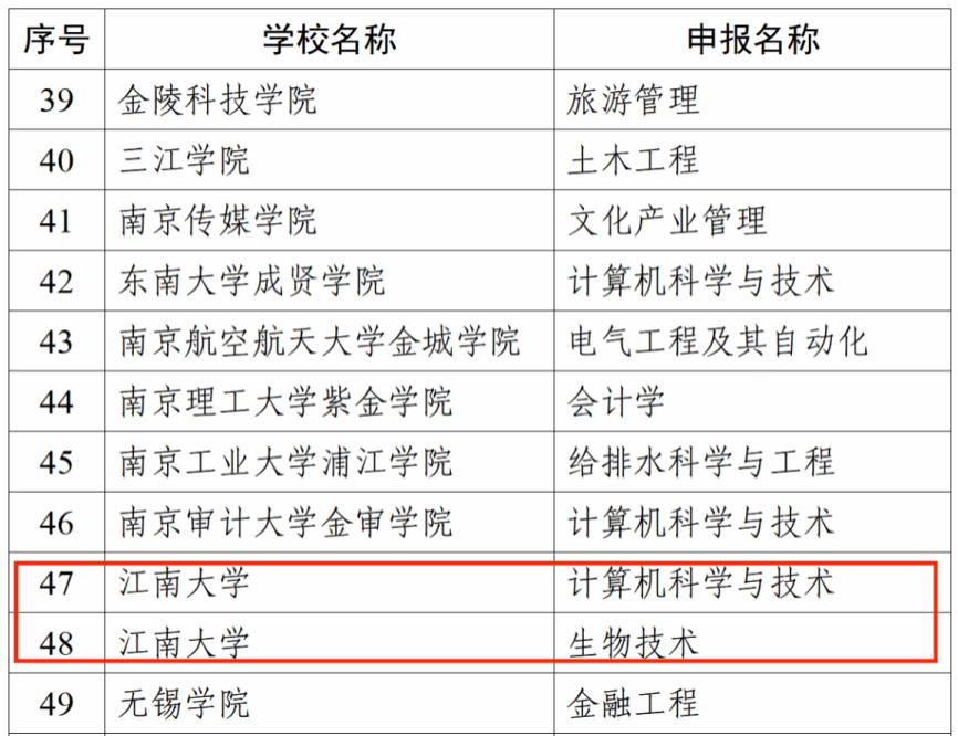 近日,省教育厅公布了《关于公布2023年本科高校产教融合型品牌专业建设点遴选结果的通知》(苏教办高函〔2023〕16号),我校生物技术(负责人:刘龙)和计算机科学与技术(负责人:吴小俊)两个专业获批江苏省产教融合型品牌专业建设点。