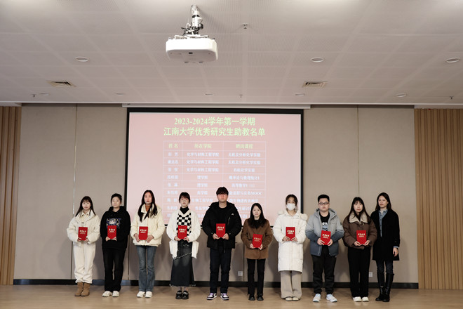 会上,孙子文宣读2022-2023学年第二学期以及2023-2024学年第一学期优秀研究生助教名单,方正、储鸿为获奖助教颁发了荣誉证书。