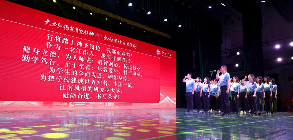 陈卫在总结讲话中充分肯定了一年来全体教师所付出的辛勤努力和取得的丰硕成果。围绕“大力弘扬教育家精神,加快建设教育强国”主题,殷切希望广大教师坚定理想信念,做“明道信道”的铸魂之师,胸怀“国之大者”,自觉肩负教育强国建设的时代重任,以高度的社会责任感和深厚的爱国情怀筑牢教育强国根基,更好担起学生健康成长指导者和引路人的责任。潜心教书育人,做“立德躬行”的模范之师,严格落实师德师风第一标准,讲好身边榜样教师的动人事迹,见贤思齐、择善而从,争做“四有好老师”,用真心、真情、真诚关爱学生,用知识、学识、见识照亮学生心灵,为学生扣好“第一粒扣子”,彰显榜样的力量。不断提升自我,做“业精善学”的创新之师,树立终身学习的理念,以学生成长为中心,把握教学学术创新规律,着眼世界学术前沿和国家重大需求,推动科教产教融合、教学改革、课程改革,以有温度的教育培养有引领力的学生,更好肩负起民族振兴之育人使命。号召全校教师以此次教师节表彰大会为契机,努力培养更多高水平的创新人才、产出更多高水平的创新成果,为谱写教育科技人才一体发展的锦绣华章,实现中国式现代化的宏伟蓝图贡献更多江南力量。