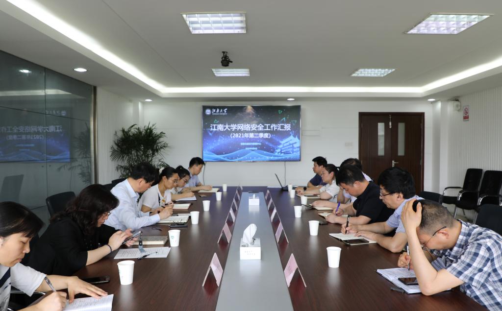 信息化建设与管理中心副主任俞伟向与会人员汇报了2021年第二季度的网络安全工作情况和进一步加强学校网络安全的保障方案。