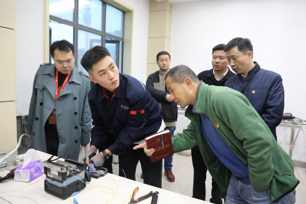 最后,信息化中心党支部一行参观了接入维护中心培训基地,近距离了解了城市光传输设备,光缆入户熔接技术等。