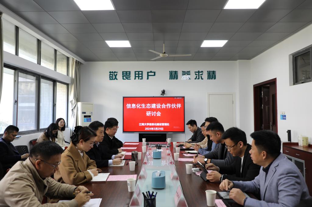 为贯彻落实教育部教育数字化战略行动有关要求,加快推进《江南大学奋进计划》分规划《数智校园增效计划》的执行,3月29日,信息化建设管理处召开江南大学信息化生态建设合作伙伴研讨会,十家参与江南大学信息化生态建设的合作伙伴参会。