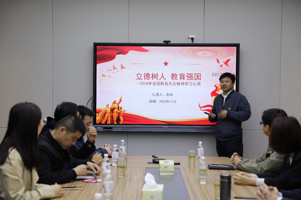 午后,党员们移步至宜兴食品与生物技术研究院,进行了一场科技与创新的深度体验。研究院院长张光生详细介绍了在人才培育、科研成果及产学研融合方面的显著成就,并亲自带领党员们参观了入驻团队实验室、公共实验平台及中试基地,让党员们直观了解研究院的运作机制,激发了大家在科技创新和专业发展方面的新灵感。随后,在研究院会议室召开的党员大会上,俞伟同志围绕“立德树人,教育强国”的主题,分享了学习2024年全国教育大会精神的深刻体会,为党员们提供了新的思考角度。活动尾声,党员们来到宜兴岳飞文化园,通过实地参观和了解岳飞生平事迹,深切缅怀这位民族英雄。