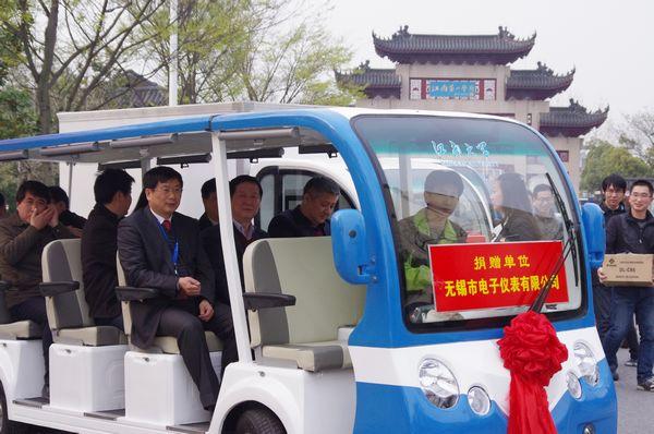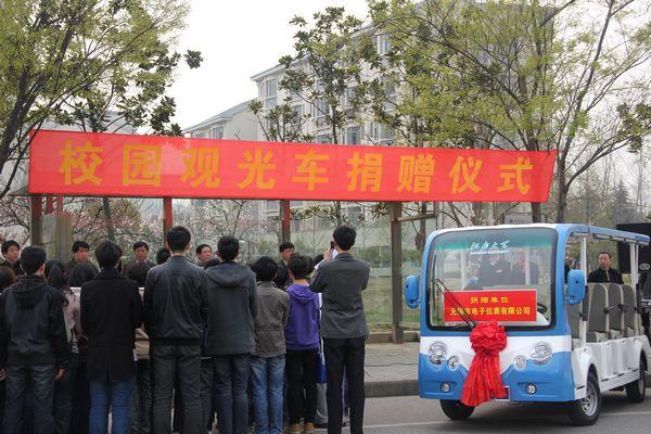 3月28日,无锡市电子仪表工业有限公司“校园观光交通车”捐赠仪式在我校举行。无锡市电子仪表工业有限公司董事长张健先生,江南大学副校长徐岩、田备出席仪式。物联网工程学院党委书记倪松涛、后勤处处长周建、保卫处处长杨杰及师生代表、后勤管理处员工代表参加了活动。社会资源处处长邱建平主持仪式。