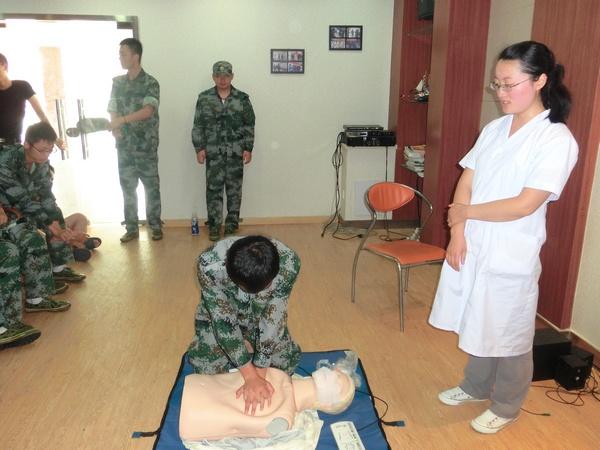 6月19日,校医院闫医生和吴医生应邀来到桃园午后阳光茶吧,为军训学子进行现场急救应急培训。