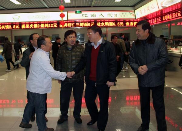 在学生第一食堂“江南苑”餐厅,武书记一行向后勤职工们表示亲切问候,并认真察看了餐厅的价格状况、卫生条件、花色品种、就餐环境等;在桃园学生公寓,武书记详细了解了学生的住宿条件、宿舍管理制度、车辆停放秩序等情况,听取了宿舍园区工作人员的汇报,充分肯定了辅导员进宿舍和大学生自我管理的创新模式;在收发快递中心,武书记仔细询问了快递超市的经营和管理情况,要求认真把这项工作做好。最后,武书记一行还到后勤服务大厅走访,与工作人员进行了亲切交流。