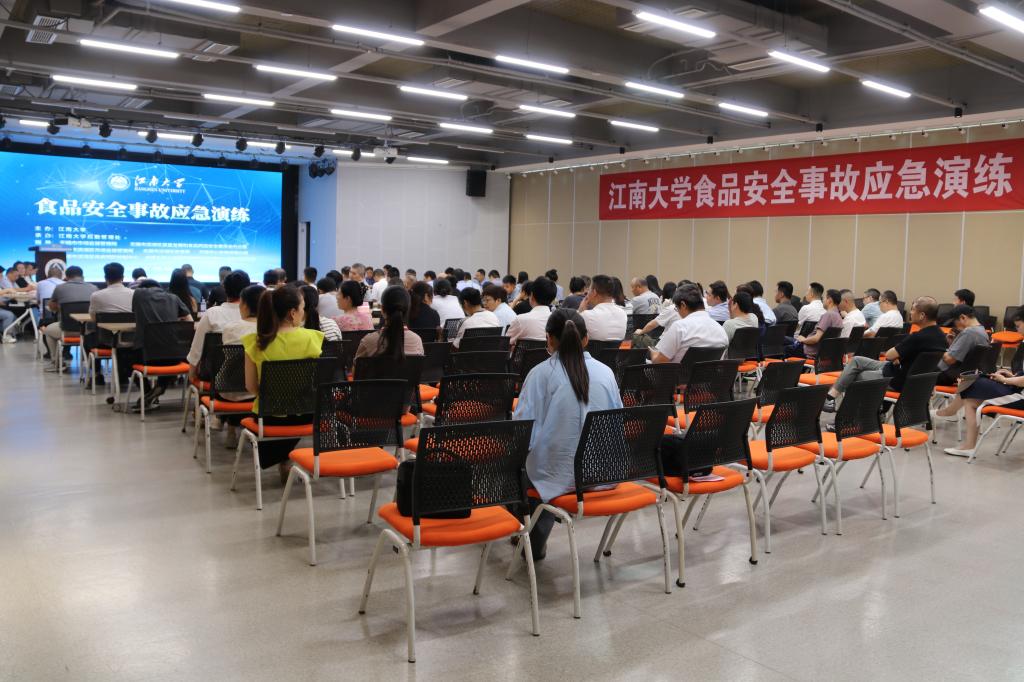 民以食为天,食以安为先。为有效提升学校应对食品安全突发事故的应急处置能力,切实保障师生“舌尖上的安全”,6月20日,江南大学食品安全突发事故(IV级)应急演练在北区大学生活动中心开展。本次演练由江南大学与无锡市市场监督管理局、滨湖区市场监督管理局、滨湖区疾病预防控制中心等单位联合举办,由后勤管理处承办,无锡市市场监督管理局食品安全协调处处长邹振环、滨湖区市场监督管理局党委书记、局长王巍、江南大学后勤系统党委书记朱新伟出席演练。区相关指导单位、滨湖区高校食安共治联盟学校代表、后勤系统各部门代表120余人到场观摩学习。
