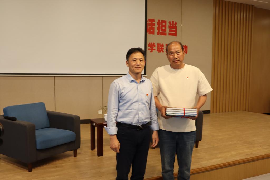 后勤党委书记朱新伟向全国劳模朱建平赠与后勤系列丛书