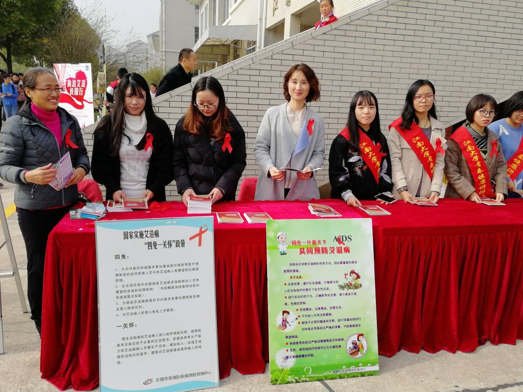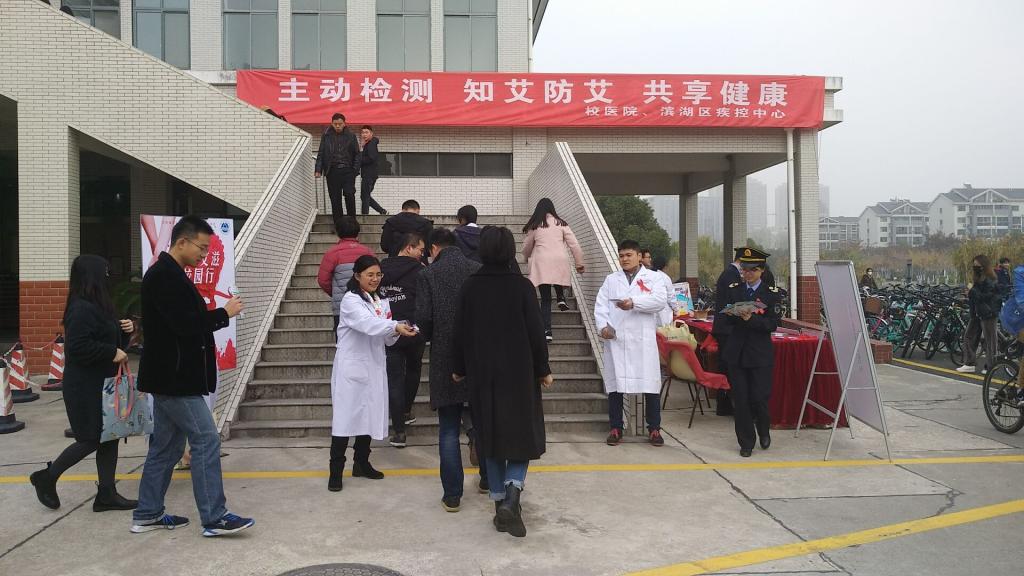 12月1日是第31个“世界艾滋病日”。11月30日中午,校医院、学工部联合滨湖区疾控中心、滨湖区卫生监督所、雪浪社区卫生服务中心、校同伴教育讲师协会,分别在学校一食堂、四食堂门口,举办了大型防治艾滋病宣传教育活动。