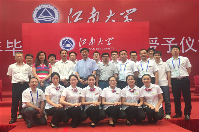 蝉鸣风夏,凤凰花开,江南大学2017届毕业典礼暨学位授予仪式于6月24、25日在体育馆隆重举行。现场桌椅整齐划一,场面尤为震撼。典礼背后,除了默默奋斗在舞台后面的后勤员工,还多了一些可爱的身影,她们就是勤工助学的学生员工。