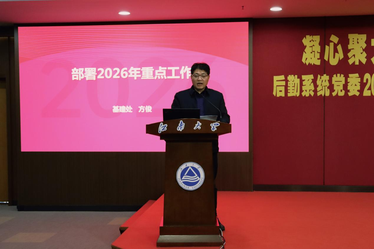 会上,后勤管理处处长吴光明、基建处处长方俊、校医院院长孙红旭及后勤系统党委书记朱新伟分别就2026年重点工作进行部署,围绕后勤服务保障、基建项目建设、医疗卫生服务及党建引领等方面提出明确目标和务实举措,强调要以师生需求为导向,持续提升管理效能和服务水平,为学校高质量发展提供坚强支撑。