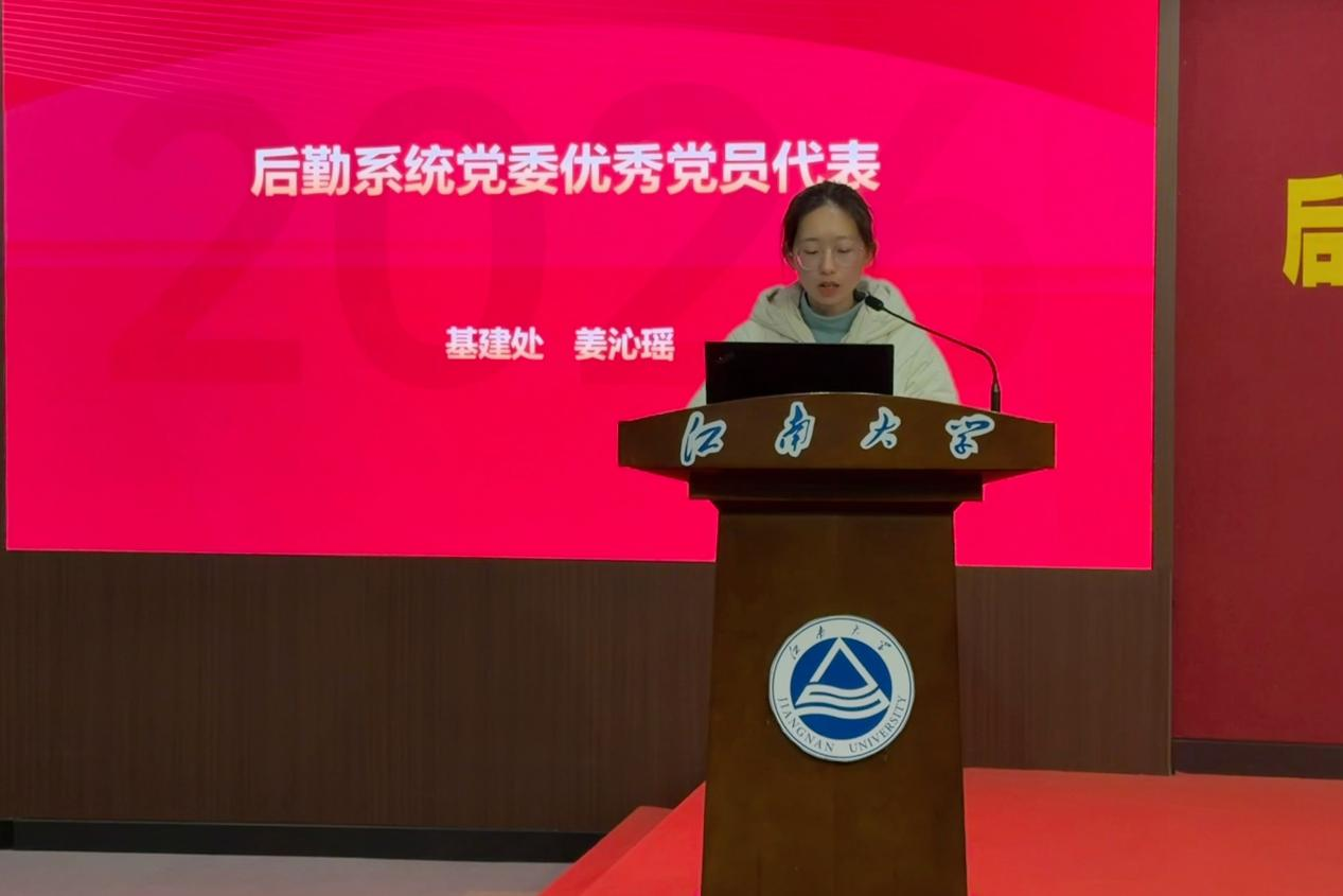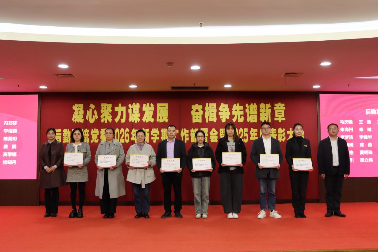 方俊宣读了2025年度校级考核优秀及良好人员名单,吴光明宣读了《关于表彰后勤系统党委2025年度先进集体和先进个人的决定》。与会领导为获奖集体和个人颁发荣誉证书。后勤系统党委优秀党员代表姜沁瑶、最佳员工代表徐悦、后勤管理处最佳服务单位代表陈小平分别发言,分享了立足岗位、服务师生的实践感悟,表达了珍惜荣誉、接续奋斗的信心与决心。