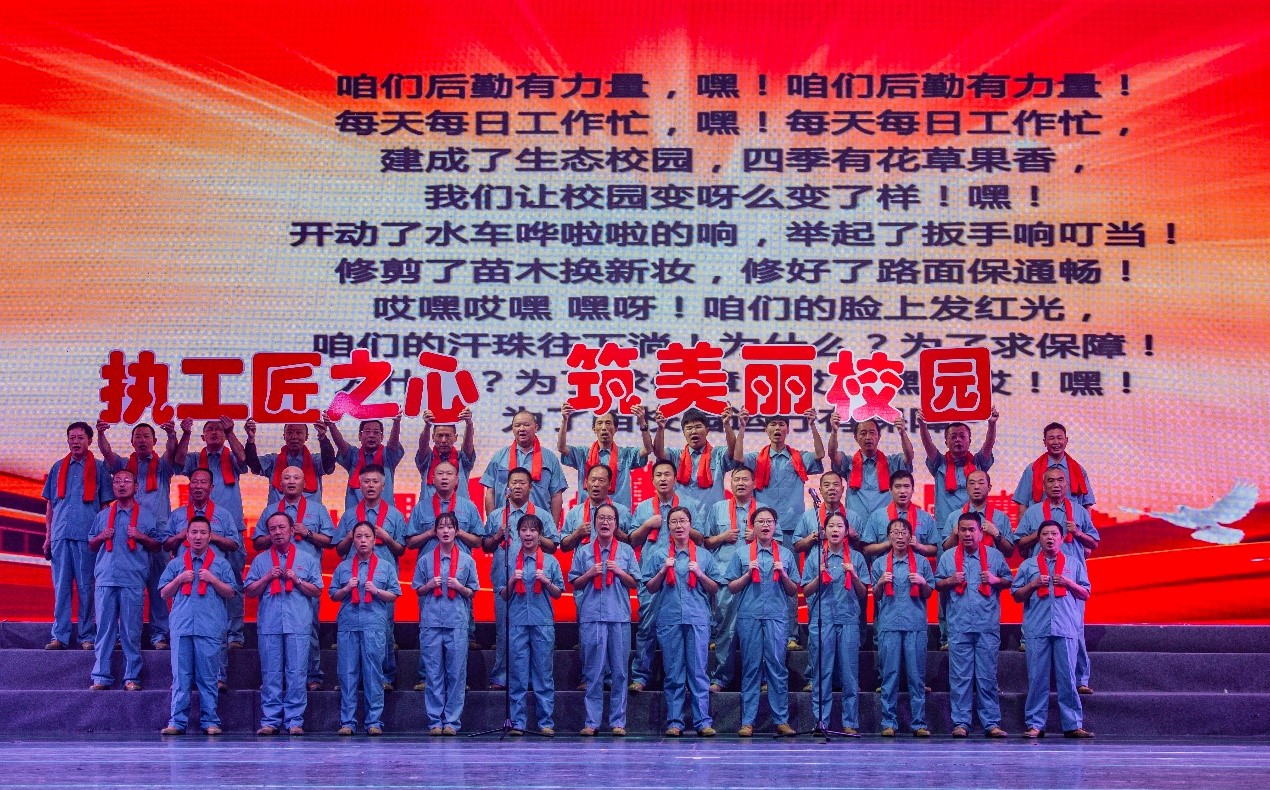 花开盛世,梦圆中华。晚会在大合唱《不忘初心》和舞蹈《我和我的祖国》中圆满落下帷幕,后勤职工共同歌唱,用歌声告白祖国,齐声祝福祖国母亲华诞。在过去的工作中,后勤人始终秉承“至纤至细为师生着想、奔波忙碌为师生谋利”的工作理念,不断提升后勤服务的品行、品质、品味和品牌,不断提升文化认知和价值认同。在新时代的征程中,我们将初心如磐、使命在肩、砥砺奋进,用勤劳和智慧浇灌出更丰硕的业绩!