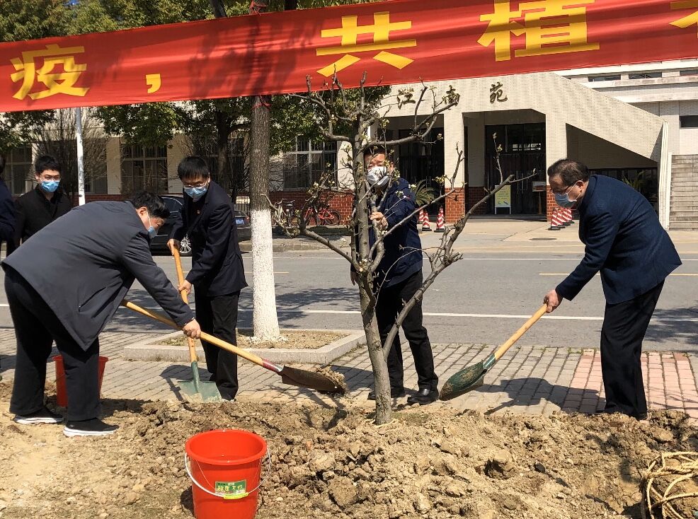 阳春三月,春和景明,万物复苏,当前正是新冠肺炎疫情防控的关键时期,同时也是植树绿化的黄金季节。3月18日上午,校党委书记朱庆葆、校长陈坚、副校长田备带领党办、校办以及后勤保障系统各部门相关人员在我校第一食堂南侧,开展了“同心战‘疫’,共植希望”主题植树活动。