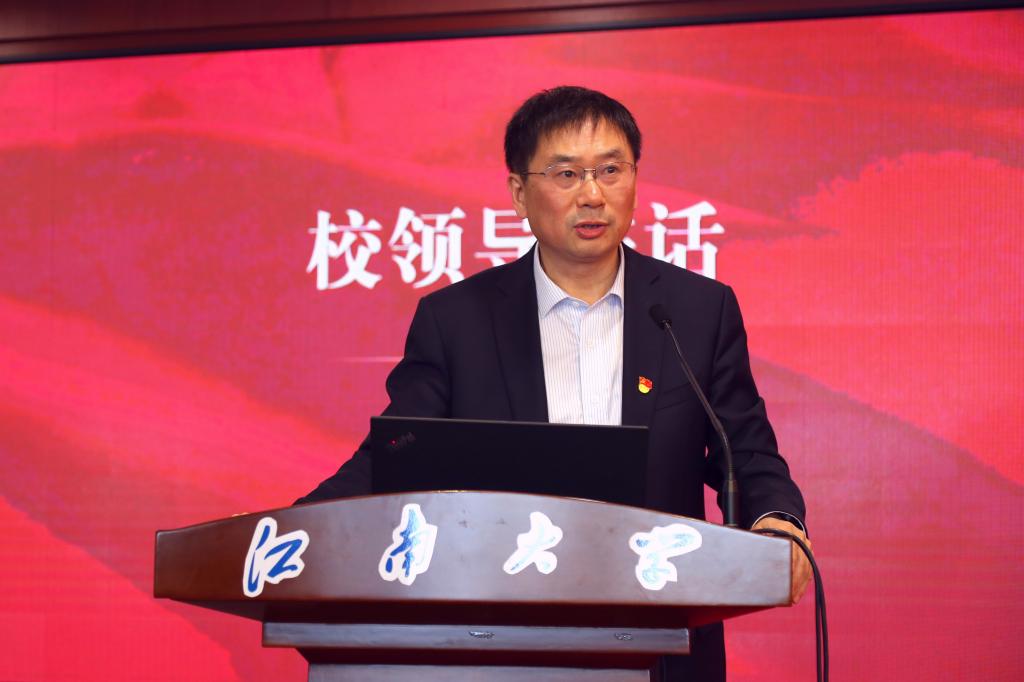 程天权、朱庆葆共同为“江南后勤研究院”成立揭牌。仪式上发布了江南大学后勤学校视觉形象,黄在宇为后勤学校授旗。后勤管理处处长刘长青宣读首批创建“后勤育人工作站”名单,学校有关部门领导为后勤育人工作站授牌。