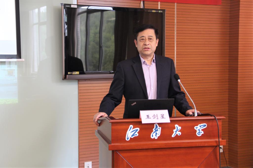 王剑星以《理念先行 文化引领——打好江南牌,迈向新征程》为题,从“组织文化的导向效应”“环境文化的生态效应”“绿色文化的桑田效应”“育人文化的载体效应”四个方面,全面、系统地阐释了学校后勤文化的内涵,介绍了江南后勤文化在行业和高校的影响力以及示范性。