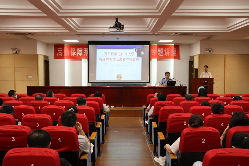 为进一步加强师德师风建设,强化警示教育,严明纪律规矩,切实增强后勤干部、教职工纪法观念、规矩意识和底线思维,营造风清气正的校园环境,9月29日下午,后勤保障系统党委采用线下线上结合的方式,特邀无锡市交警支队滨湖大队五中队指导员朱晓新,在文浩馆205会议室举办酒驾醉驾警示教育专题讲座,后勤保障系统各党支部党员代表、教职工代表近百人参加线下会议。会议由后勤保障系统党委副书记兼后勤工作协调办公室副主任金明媚主持。