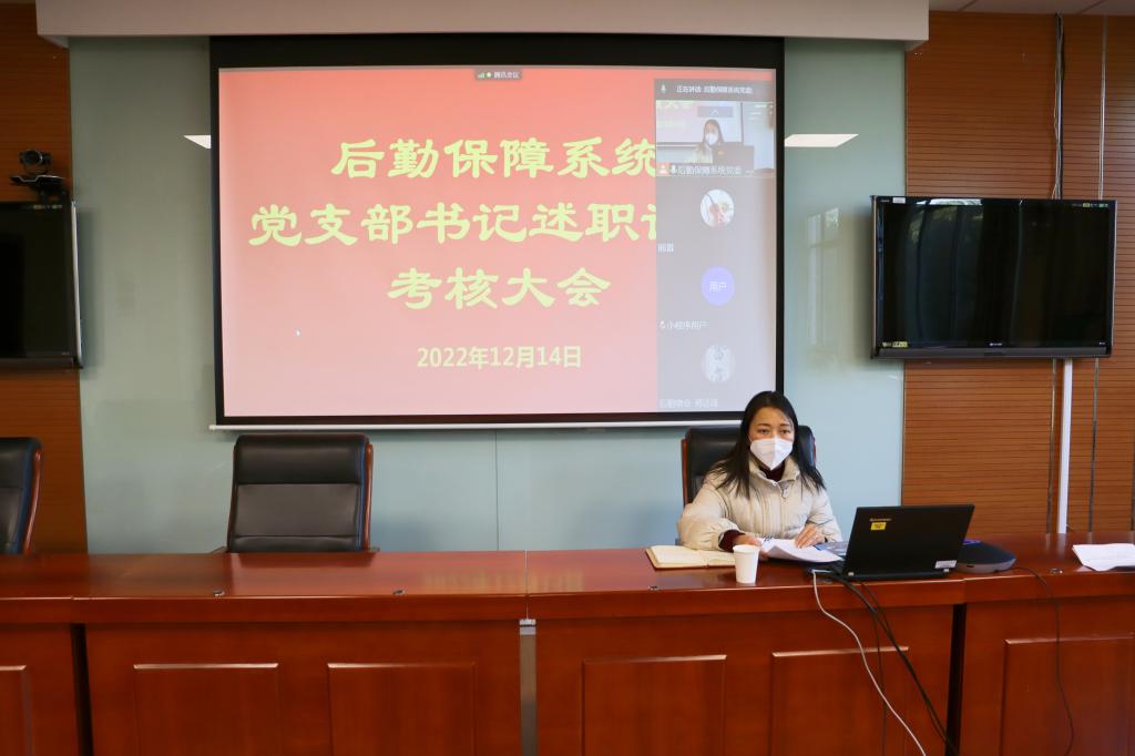 为全面落实管党治党政治责任,进一步压紧压实基层党组织书记抓党建责任,促进基层党组织建设和基层党建工作全面进步、全面过硬,12月14日,后勤保障系统党委召开2022年度党支部书记述职评议考核大会,会议采用线上线下相结合的方式,后勤保障系统党委委员、党支部委员和党员代表参加会议,会议由后勤保障系统党委副书记金明媚主持。
