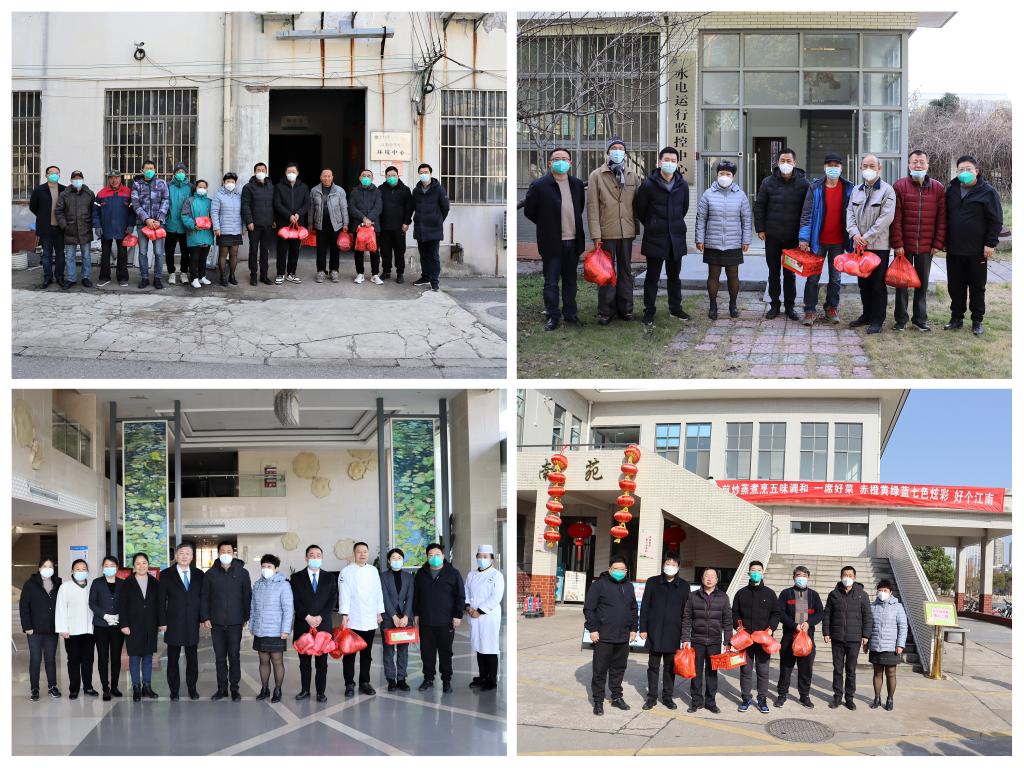 校领导一行先后来到行政楼物业值班室、东大门门岗、校医院、快递驿站、信息化中心、涓苑公寓、后勤管理处环境中心、水电运行监控中心、长广溪宾馆、江南苑餐厅、后勤管理处会议中心、橙园公寓等场所。“大家辛苦了,祝大家新年快乐!”每到一处,校领导都热情地与后勤一线职工亲切交谈,感谢他们春节期间“舍小家,顾大家”,仍然坚守在自己的工作岗位上,全力保障学校安全和各项工作的正常运转,并送上节日慰问品和“防疫包”。