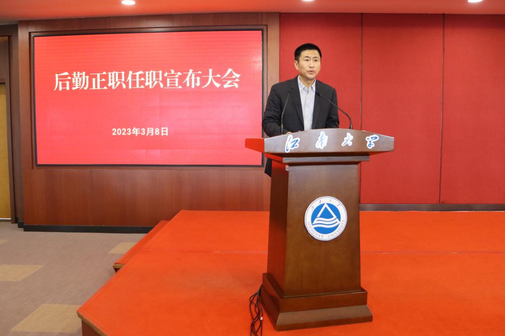 会上,戴月波宣读学校有关任命的决定:朱新伟同志任后勤党委书记、吴光明同志任后勤管理处处长、方俊同志任基建处处长、叶军同志任校医院院长。
